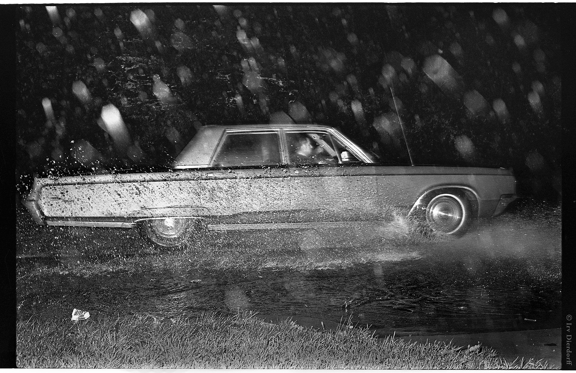 Car in rain, Haverhill, Mass., 1973, for the Haverhill Independent daily newspaper (scanned 35mm negative, 6e).