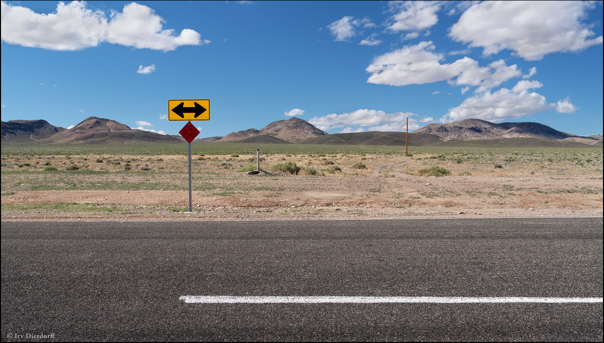 Yellow sign, near Goldpoint, Nevada, May 2019.
